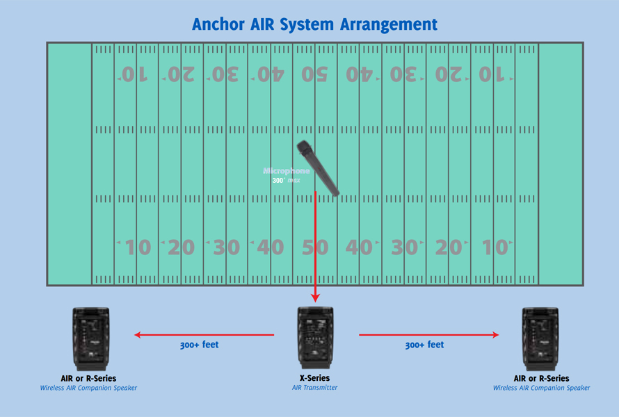 Wireless AIR Feature: The Go Getter AIR systems are equipped with a built-in transmitter that wirelessly connects to one or more Go Getter 2 AIR battery powered companion speakers. There is no limit to how many wireless AIR companion speakers can be added to a system as long as they are within transmission range of the main unit. The Go Getter 2 can also be purchased without the AIR transmitter (see GG-DP1/2 on the systems tab).