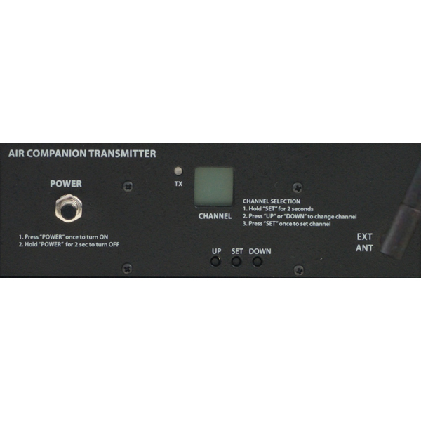 The Go Getter AIR system operates in the 902-928 MHz band. The transmitting Go Getter speaker and the AIR wireless companion speaker both feature a LED display with controls to synchronize the units to anyone of 100 user selectable channels. To preserve battery life when systems are used without wireless connection, both transmitter and receiver can be powered off individually. The GG-AIR companion speakers are equipped with their own volume controls, but volume cannot be increased to a higher level than that set on the main system. The Companion speaker also have separate bass and treble controls. AIR companion speakers can be placed at a distance up to 300 feet away from the transmitting unit and up to 150 feet away without experiencing latency.