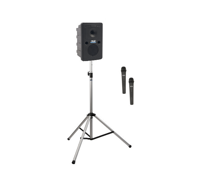 The following systems share the same basic features i.e., Bluetooth, with up to 4 wireless microphones, 2 hardwired microphone inputs, and AIR transmitter for wireless connection to companion speakers and/or assistive listening receivers.