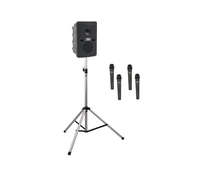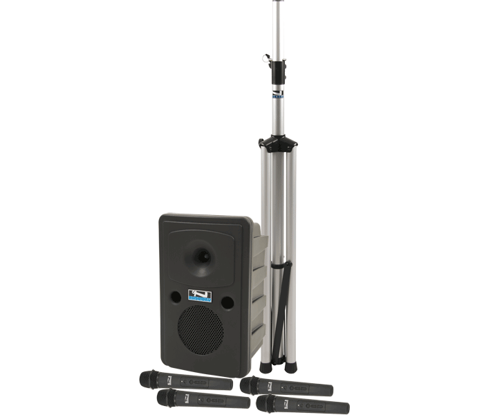 The following systems share the same basic features i.e., Bluetooth, with up to 4 wireless microphones, 2 hardwired microphone inputs, and AIR transmitter for wireless connection to companion speakers and/or assistive listening receivers.