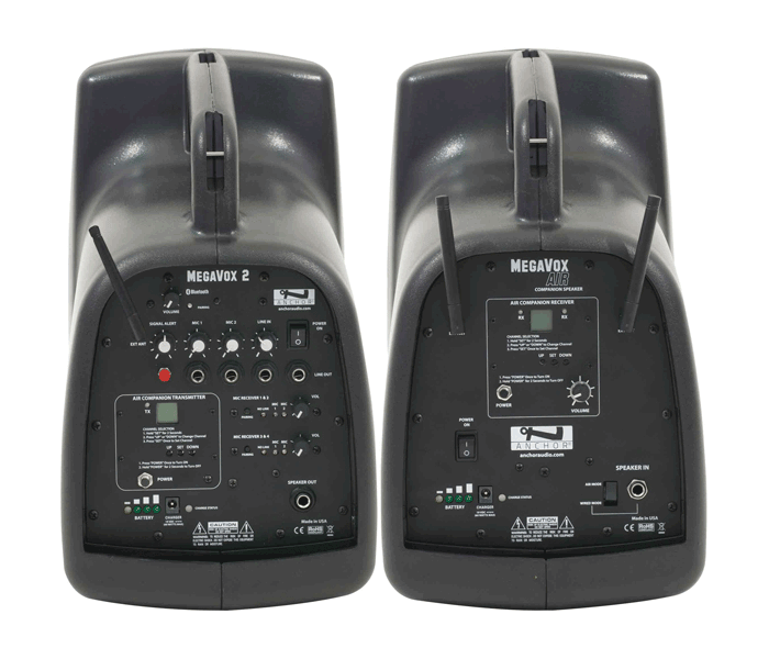 The following systems share the same basic features i.e., Bluetooth, with up to 4 wireless microphones, 2 hardwired microphone inputs, and AIR transmitter for wireless connection to companion speakers and/or assistive listening receivers.